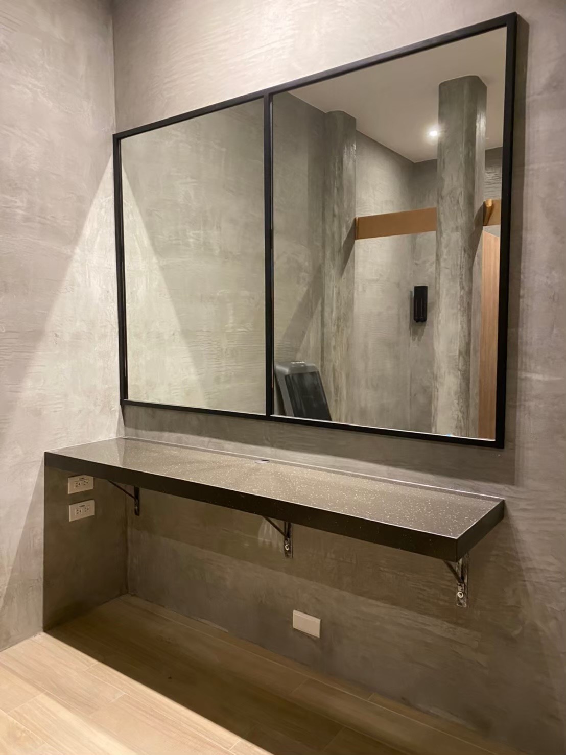 檯面結合了經典的黑色與現代的白色顆粒,適用於各種不同風格的室內設計,如傳統風格、現代風格或者工業風格。