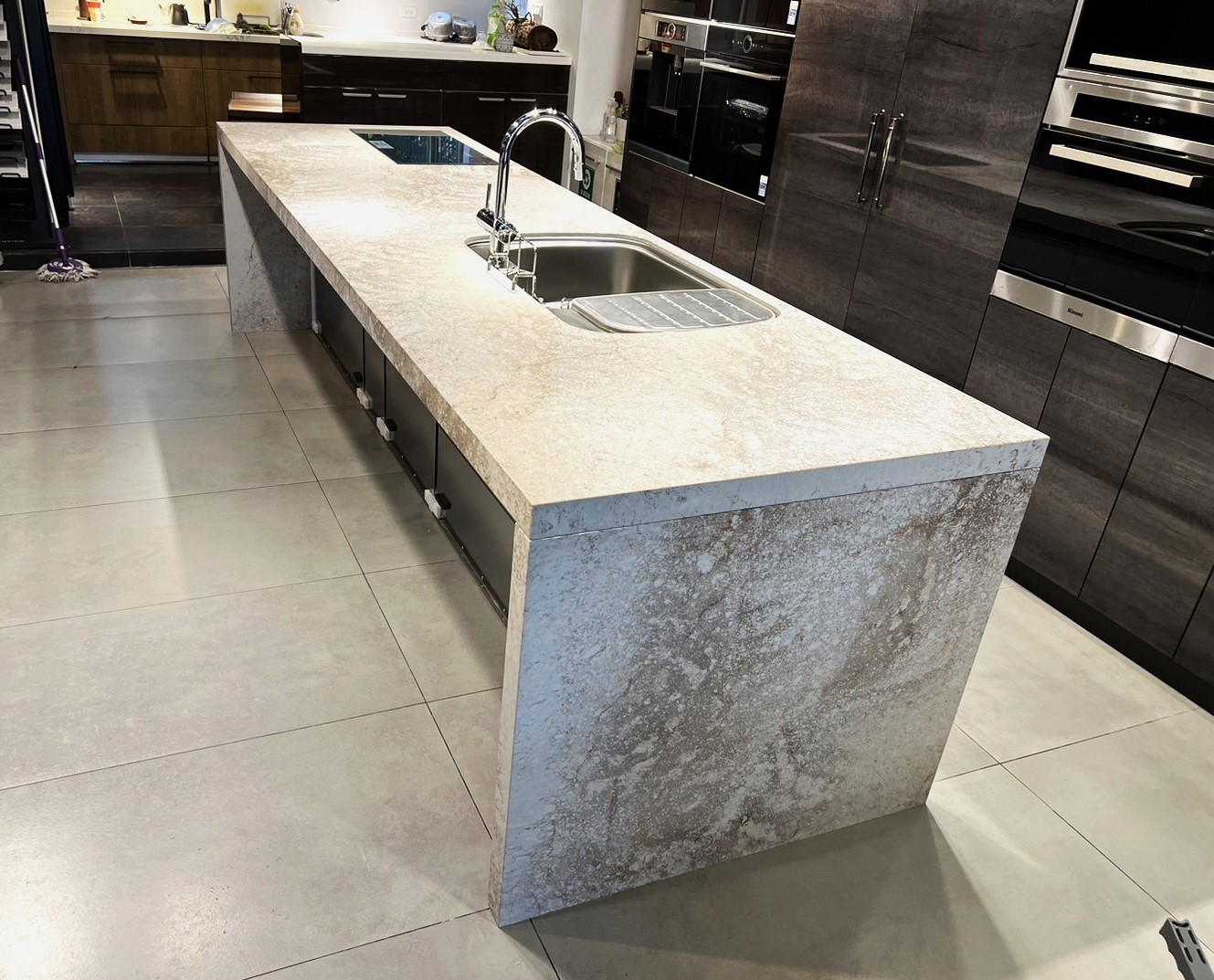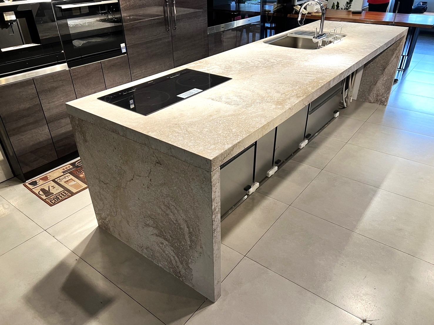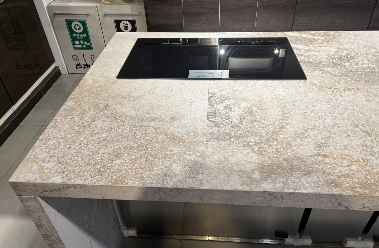 這種色系和紋理的設計有助於創造視覺上的多層次感,使檯面看起來更加豐富和立體。