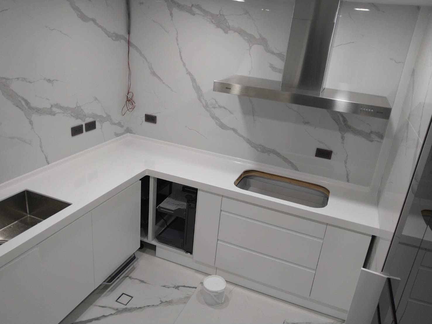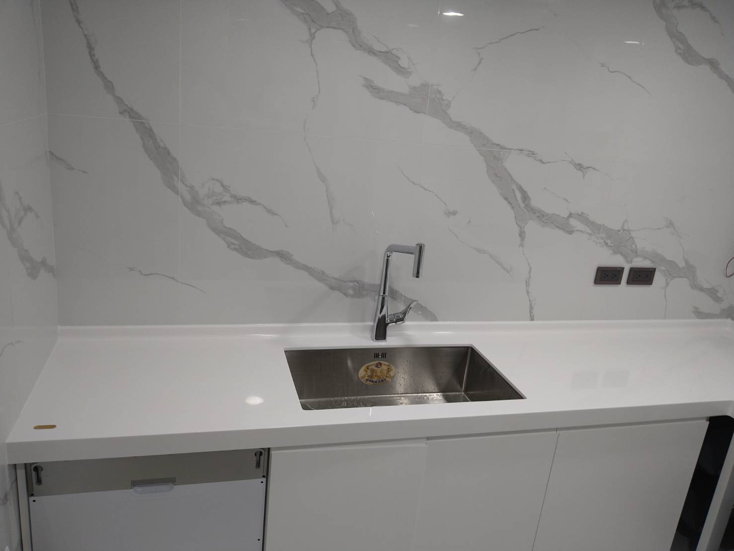 且人造石檯面易於清潔和維護。只需定期用溫和的清潔劑擦拭,即可保持檯面和櫥櫃的潔淨光亮。