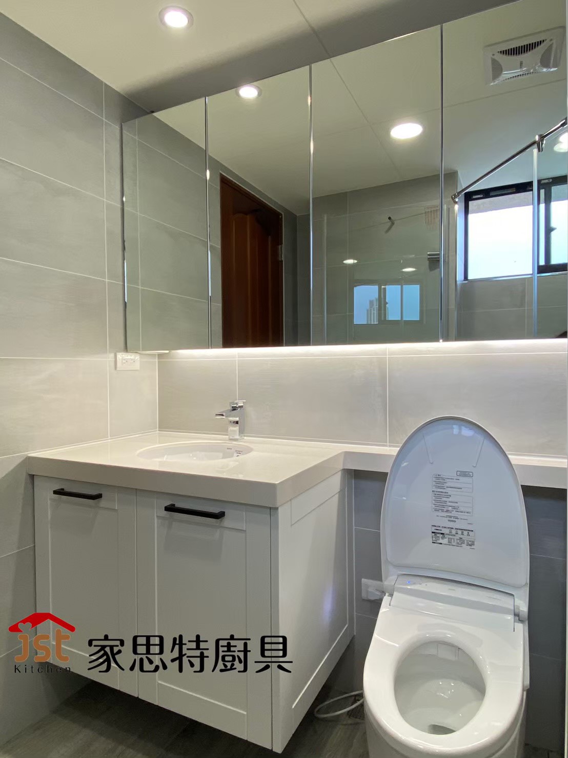 - 簡約時尚:白色檯面常常與簡約時尚的設計風格相匹配,給人一種簡潔、利落的感覺,使浴室看起來更加整潔和富有現代感。