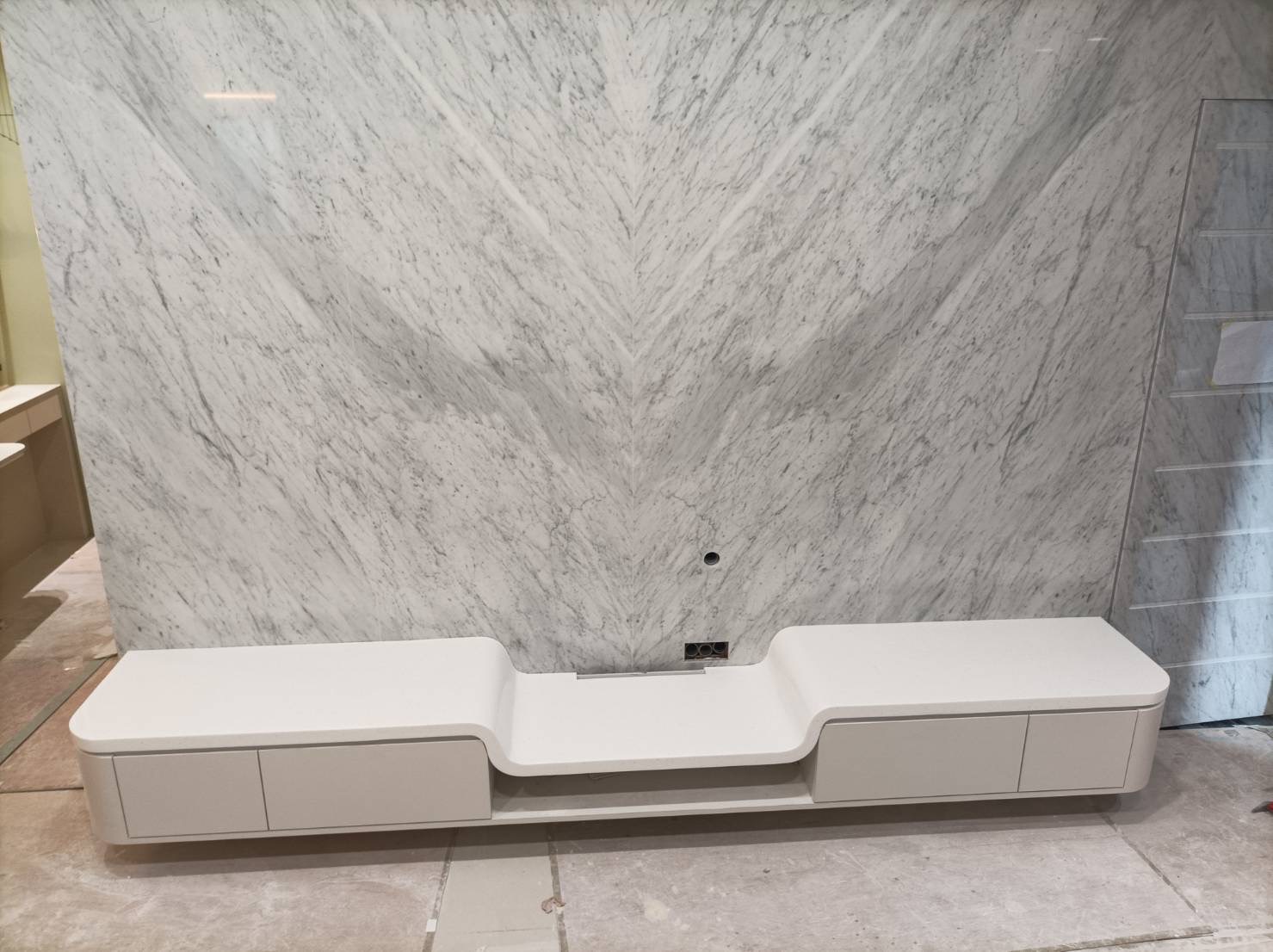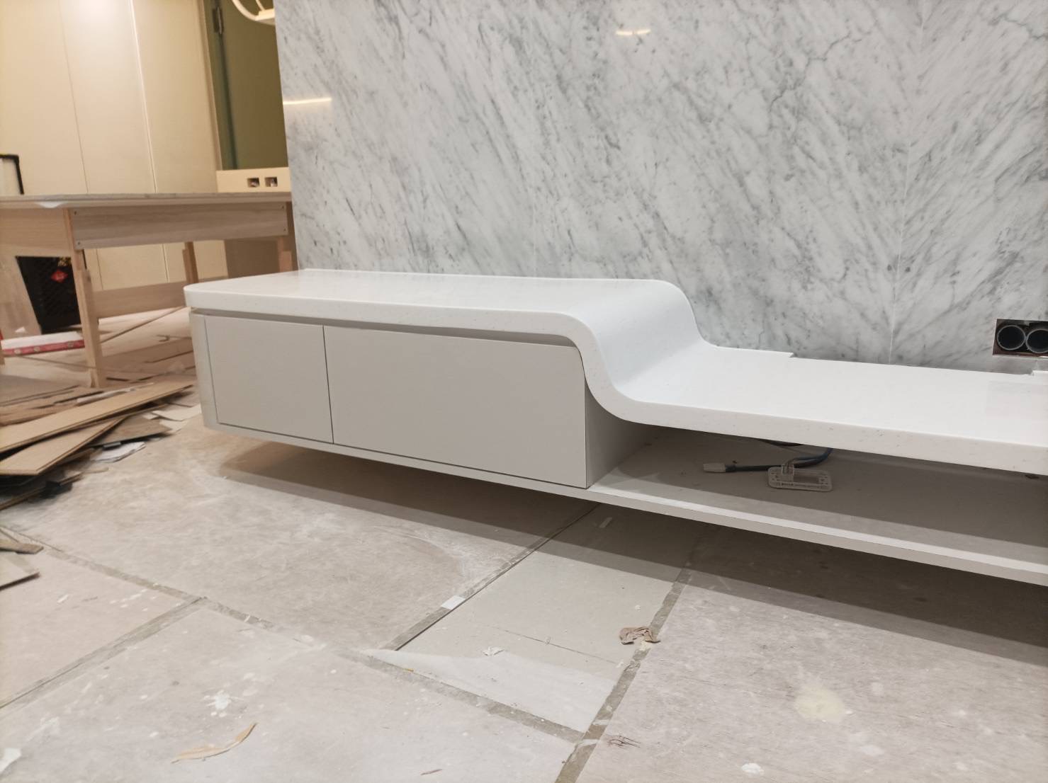 除了一般廚房檯面外,電視櫃檯面也是常見的設計